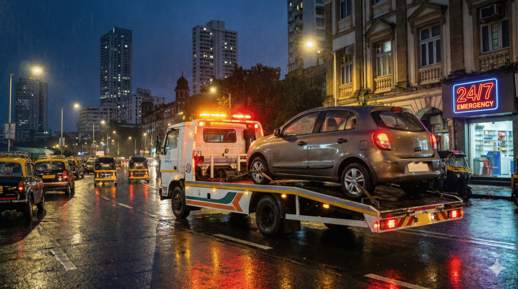 Stuck on the road? We dispatch a tow truck instantly and safely transport your vehicle to any location in Mumbai.